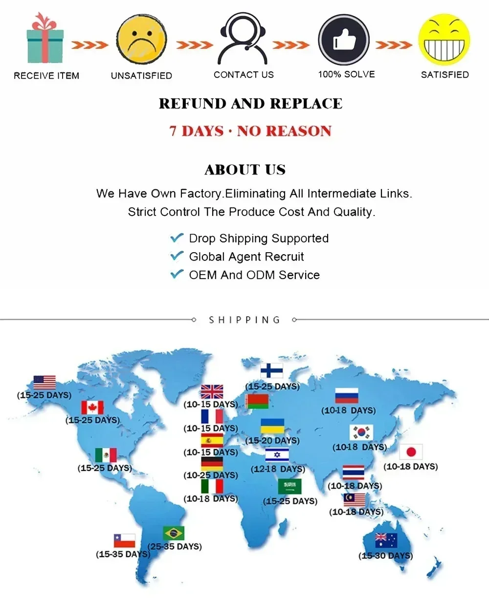 If you receive a damaged, defective, or incorrect item, please contact us within 7 days of delivery and provide clear photos of the product and packaging. We will arrange a replacement or full refund at no additional cost.