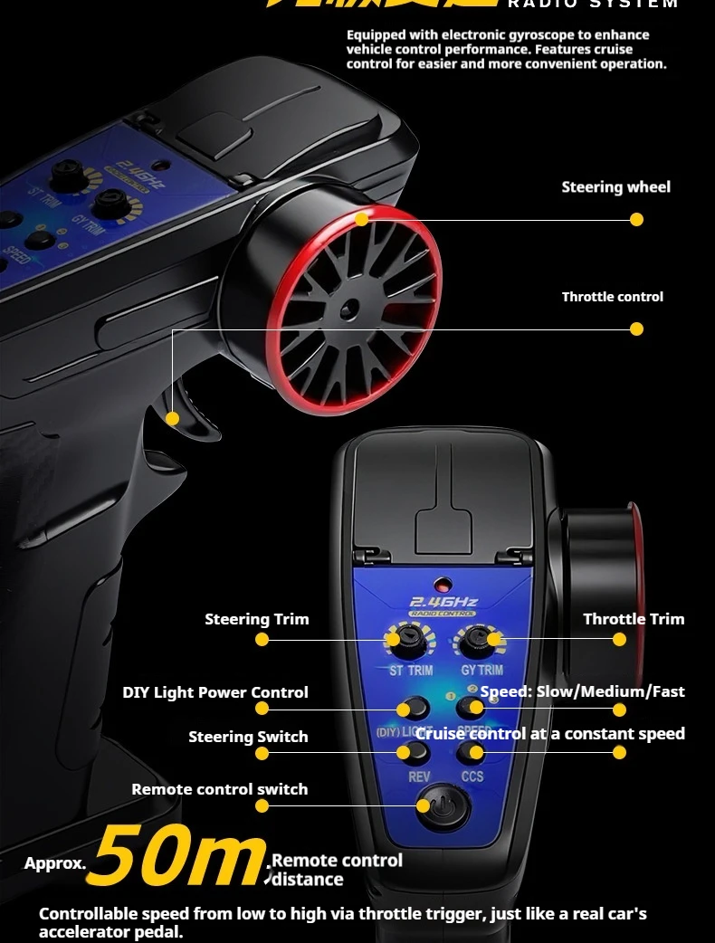 Features realistic structural design for authentic driving feel including high speed acceleration deceleration braking reversing left and right turns.