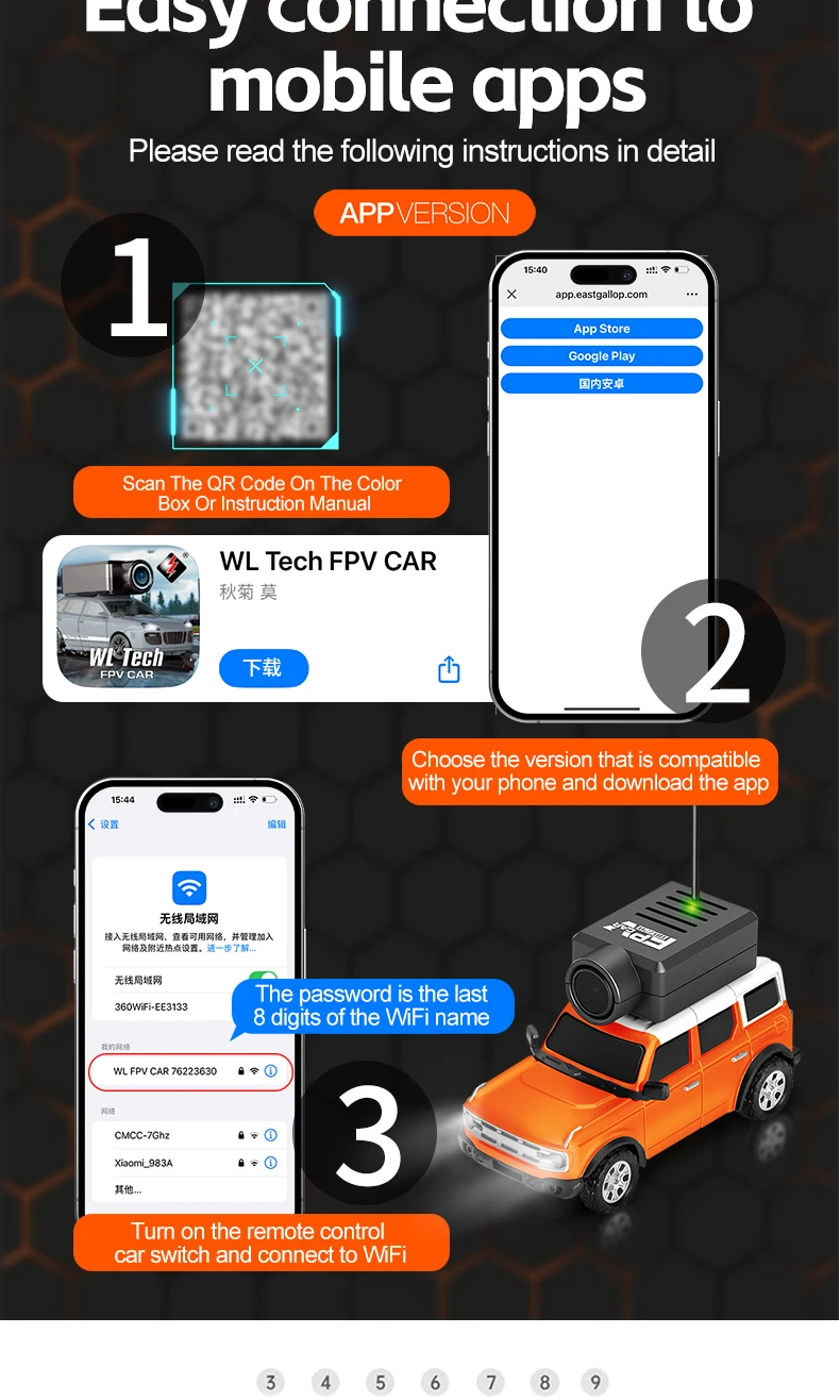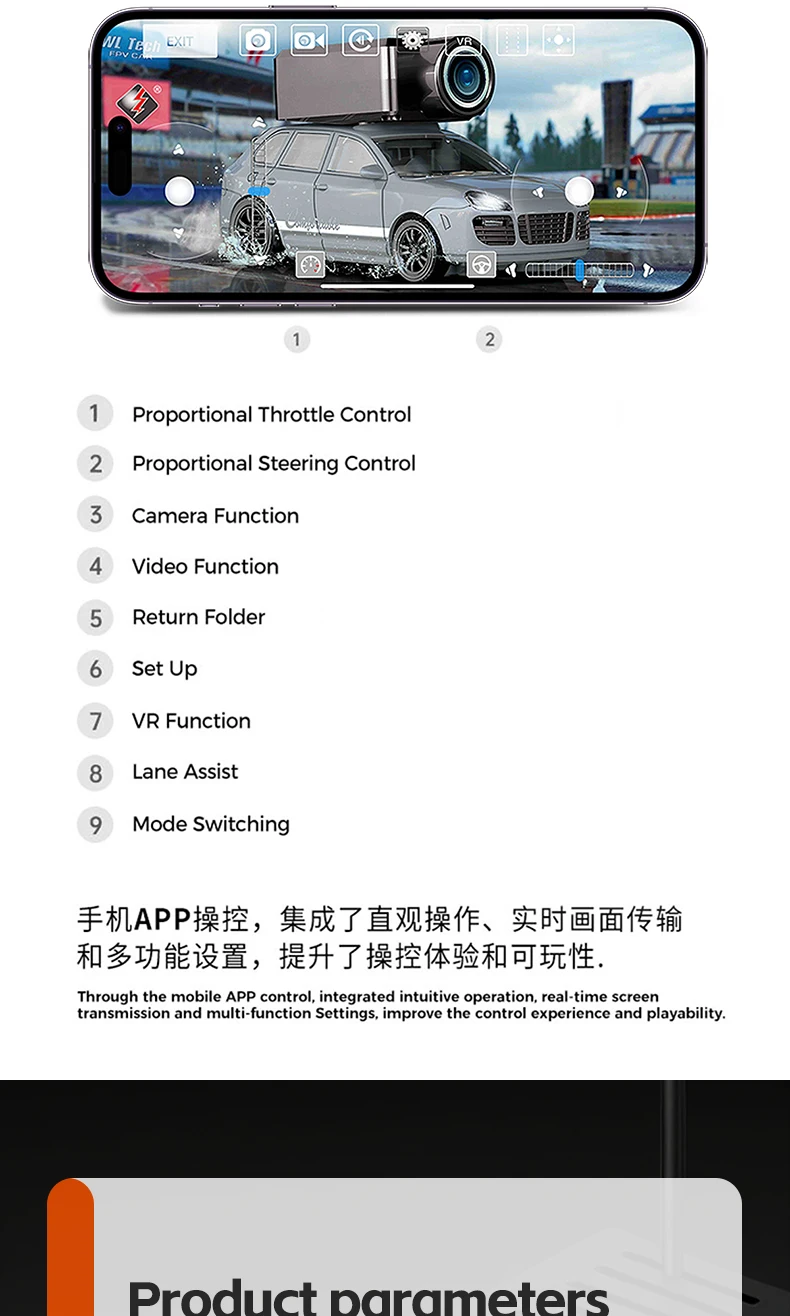 7. The APP has functions such as taking photos, videography, VR, controlling the car forward/backward, and turning left and right