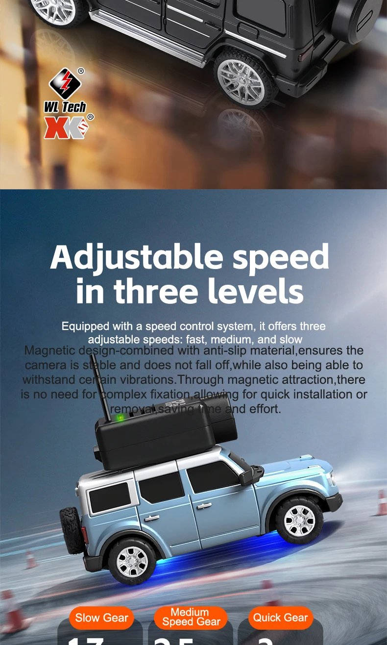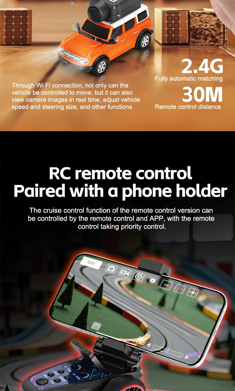 Product Description: 1:64 Fierce horse remote control camera trolley