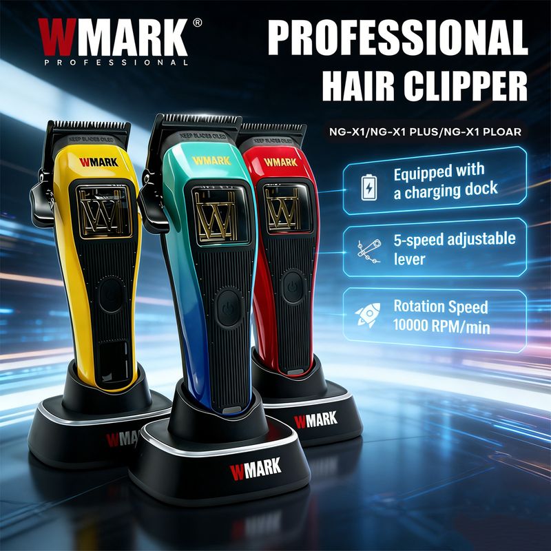 WMARK Hair Clipper Professional Hair Cutting Machine Rechargeable Barber Clippers Vector Motor 10000 RPM Clippers for Man NG-X1