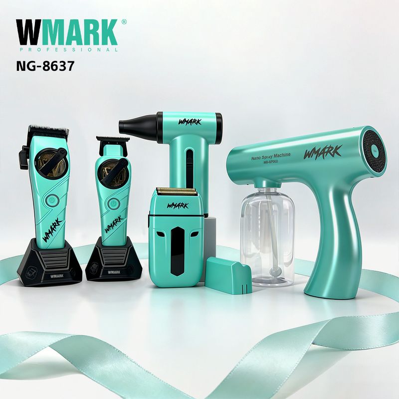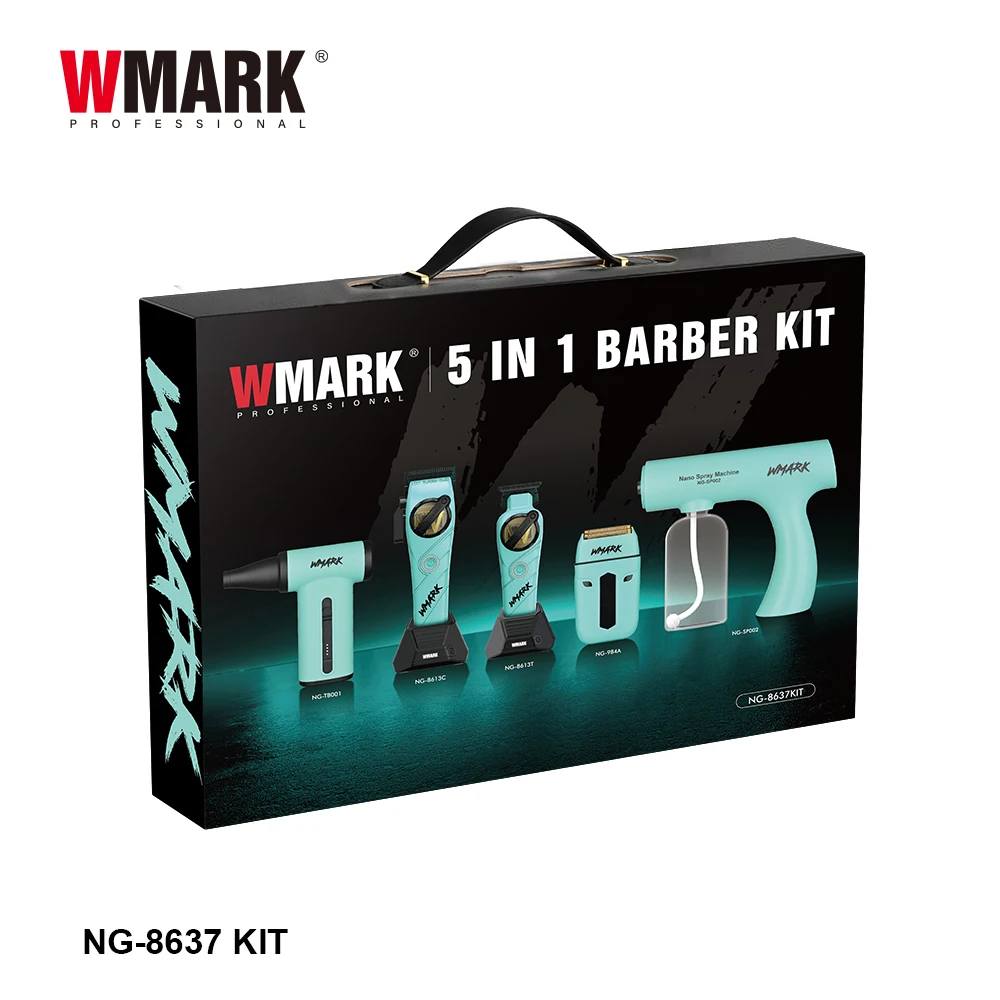 WMARK Professional Hair Clipper Shaver Hair Dryers and Spray Bottle Handheld 5 in 1 Barber KIT Gift Box Trimmer for Men NG-8637