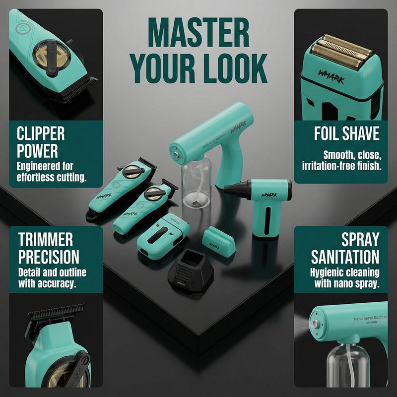★Include Hair Clipper + Detail Trimmer + Barber Shaver + Turbo Fan + Nano Spray Bottle.