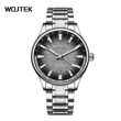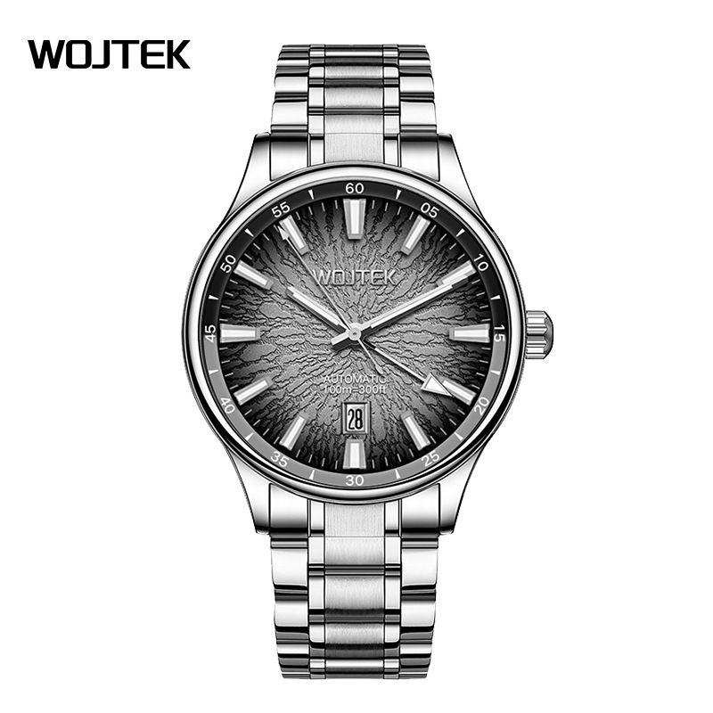 WOJTEK Luxury Automatic Mechanical Watch Men Blue Textured Dial Stainless Steel Strap 30M Waterproof Date Business Wristwatch