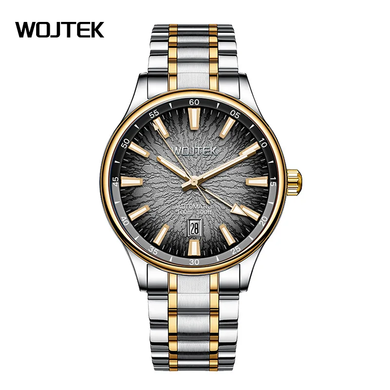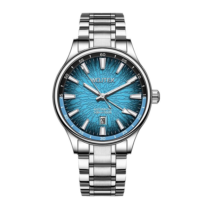 WOJTEK Luxury Automatic Mechanical Watch Men Blue Textured Dial Stainless Steel Strap 30M Waterproof Date Business Wristwatch