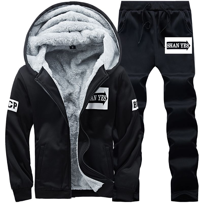 Wolf Czuadlte2024New Winter Men's Sports Set Casual Pants Hooded Sweater Youth Large Plus Plush Thickened Cardigan Two Piece Set