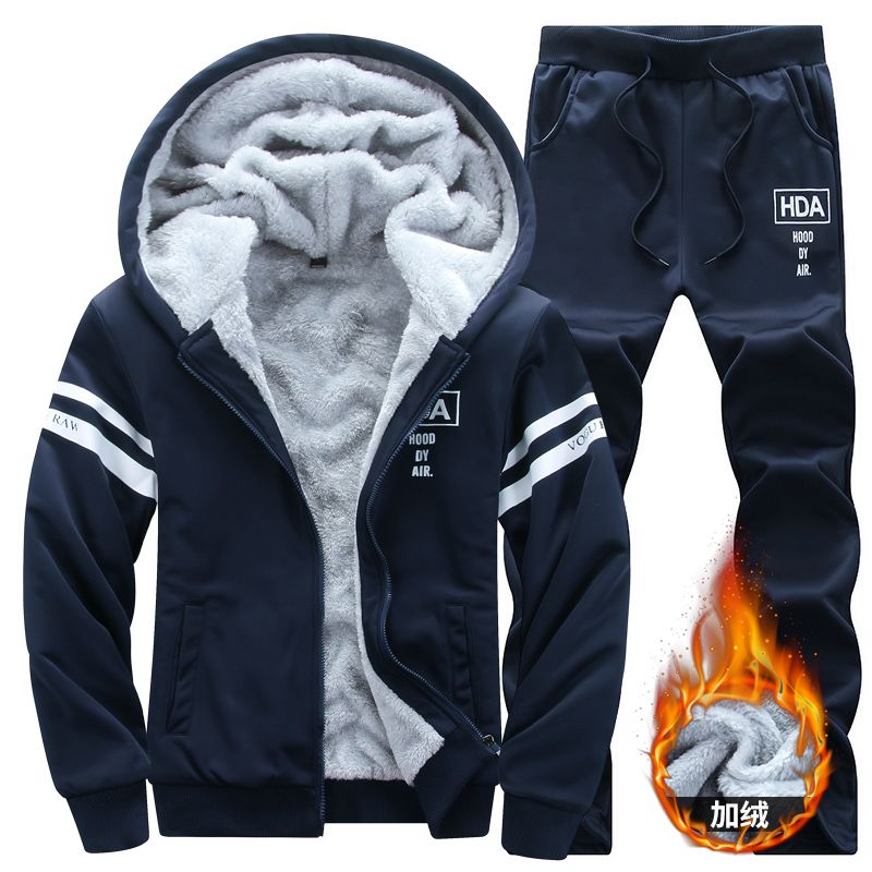 Wolf Czuadlte2024New Winter Men's Sports Set Casual Pants Hooded Sweater Youth Large Plus Plush Thickened Cardigan Two Piece Set