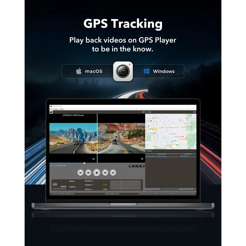 Stay connected and informed. With built-in GPS, you can track your location and route accurately. Plus, WIFI connectivity allows you to stream live footage directly to your smartphone, ensuring you're always aware of your vehicle's environment.