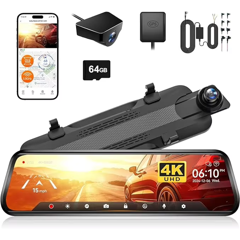 1× 4K Mirror Dash Cam 1× 64GB Card