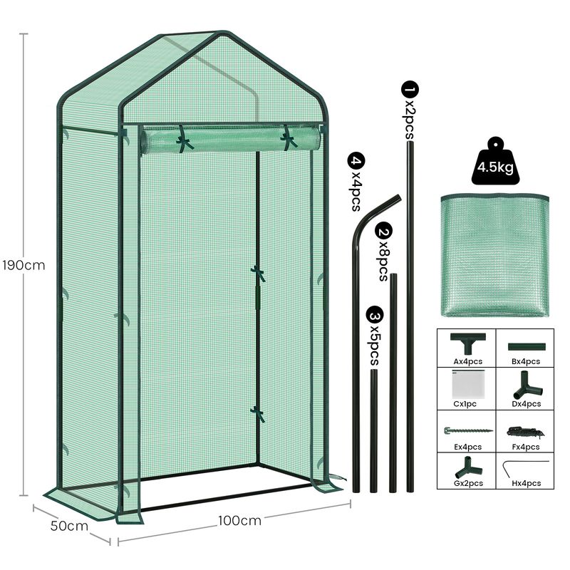 🌹EASY ASSEMBLY: Thanks to the interlocking system, you simply connect the steel tubes using the fittings and attach the tarpaulin to the frame. For more stability, you can anchor the tomato greenhouse in the ground using the 4 stakes provided