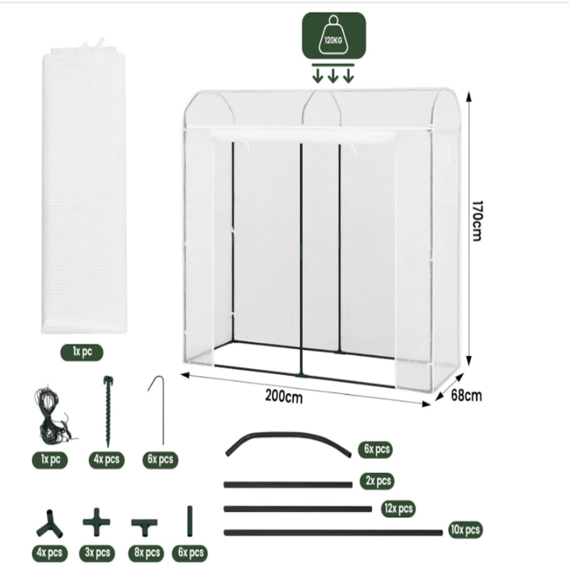 🌹FAVORABLE CLIMATE FOR PLANTS: The 4 eyelets on the roof and the 2 eyelets on each side wall not only serve for ventilation and moisture evacuation, but also facilitate the attachment of climbing aids such as wooden bars, so that you can plant tomatoes, lianas and other climbing plants.