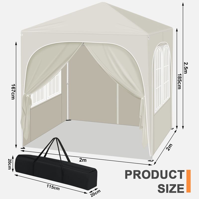 WOLTU Folding Garden Canopy 2x2m Gazebo UV Protection with Side Walls Adjustable Height Waterproof Pop-up-Pavillon for Outdoor