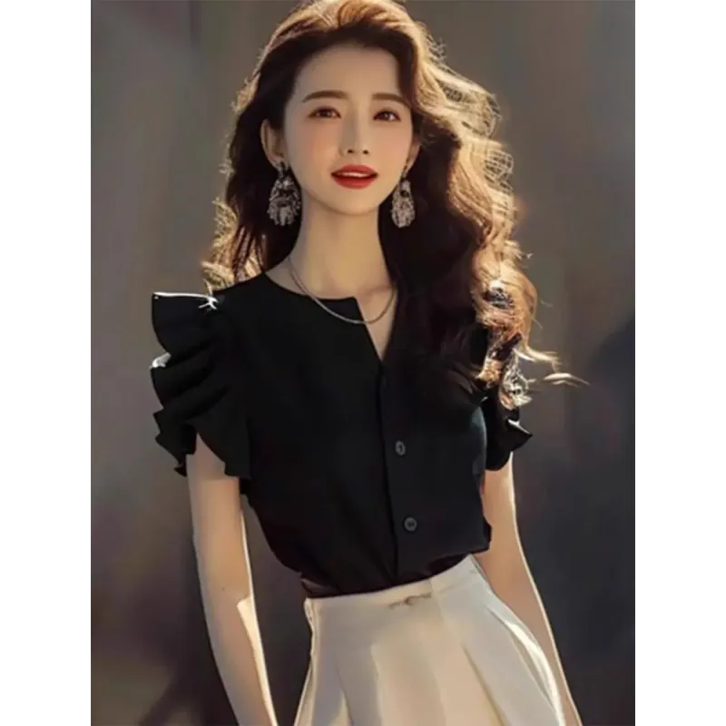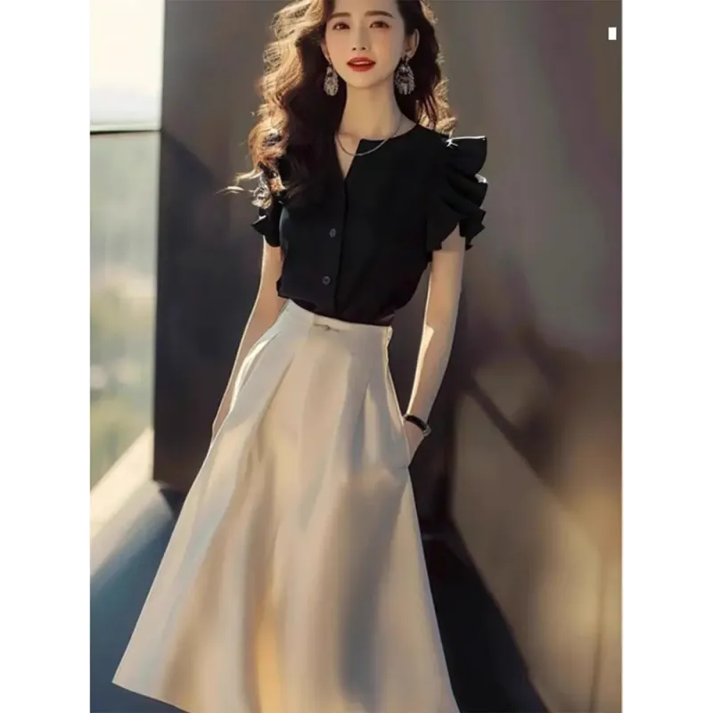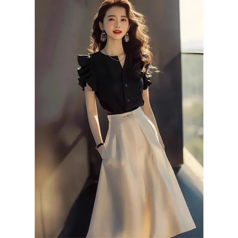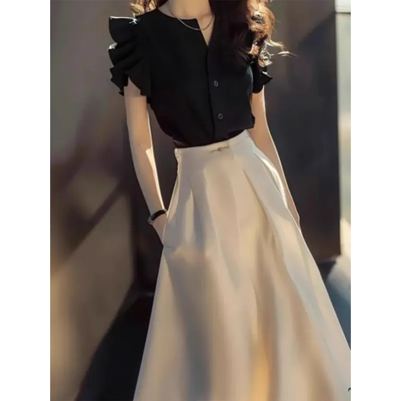 Woman Outfit Chiffon Beach Long Sleeve Skirt Black 2 Pieces Sets for Women Elegant Casual Stylish Y2k Clothes Chic New Matching