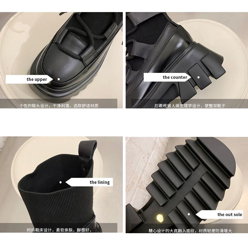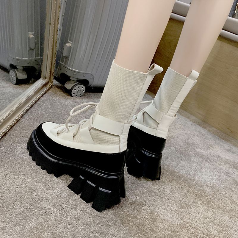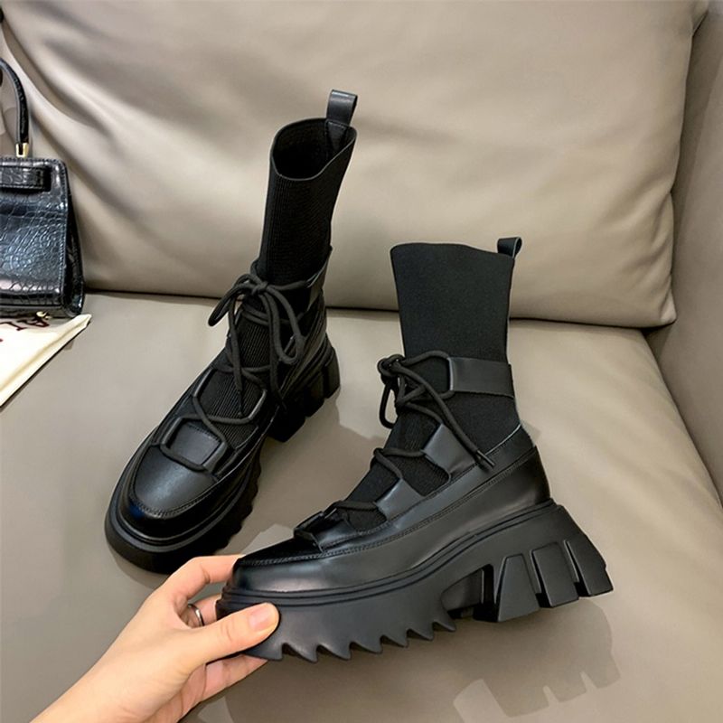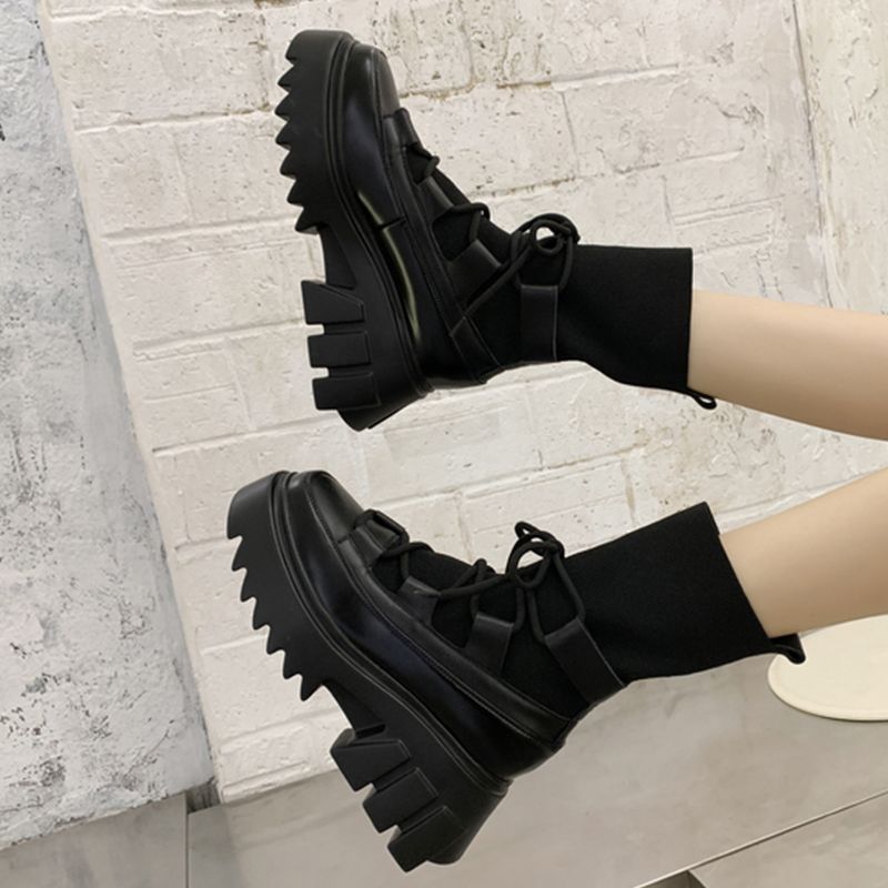 Woman's New Ladies Casual Stretch Fabric Socks Boots Fashion Cross-tied Shoes Platform Gothic Fabric Autumn Thick Bottom Lace-up