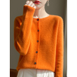 Women 100% Merino Wool Cardigan Soft O-Neck Cashmere Sweater OL Buttoned Knitwear Casual Top Clothing Korean Style
