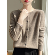 Women 100% Merino Wool Cardigan Soft O-Neck Cashmere Sweater OL Buttoned Knitwear Casual Top Clothing Korean Style