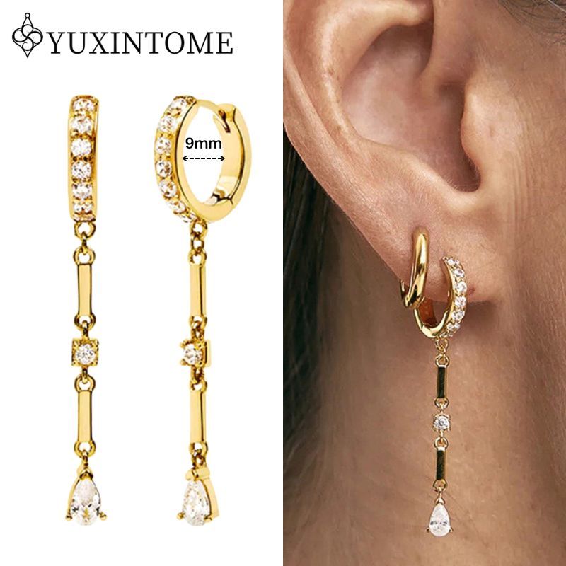 Women 925 Sterling Silver Ear Needle Double Chain Hoop Earrings Crystal Tassel Earrings Fashion Party Wedding Jewelry Gift 2022