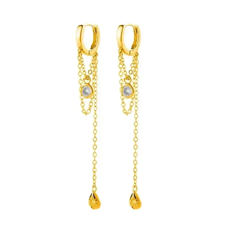Women 925 Sterling Silver Ear Needle Double Chain Hoop Earrings Crystal Tassel Earrings Fashion Party Wedding Jewelry Gift 2022