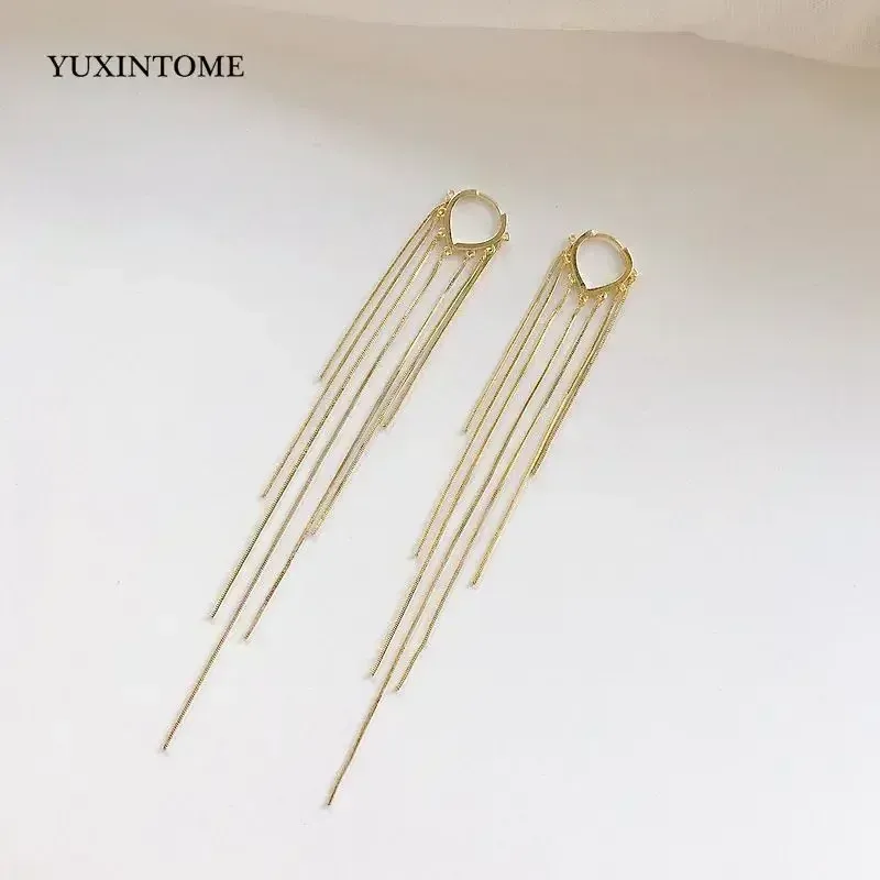 Women 925 Sterling Silver Ear Needle Double Chain Hoop Earrings Crystal Tassel Earrings Fashion Party Wedding Jewelry Gift 2022