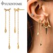 Women 925 Sterling Silver Ear Needle Double Chain Hoop Earrings Crystal Tassel Earrings Fashion Party Wedding Jewelry Gift 2022
