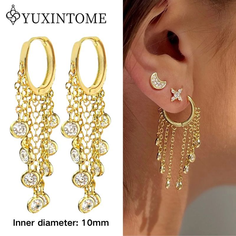 Women 925 Sterling Silver Ear Needle Double Chain Hoop Earrings Crystal Tassel Earrings Fashion Party Wedding Jewelry Gift 2022
