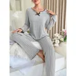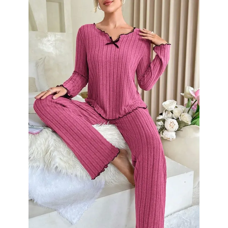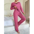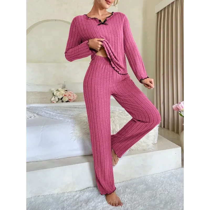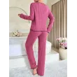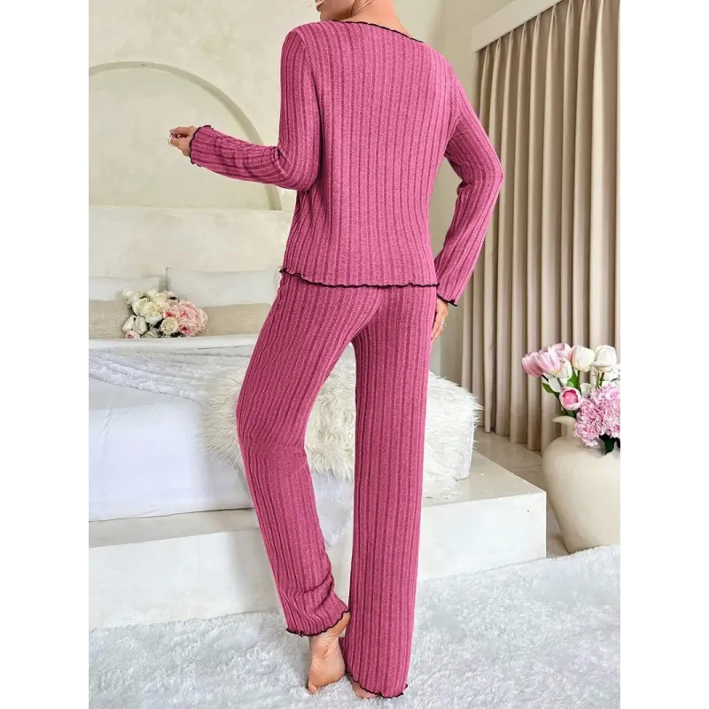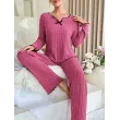 Women Autumn Winter Sleepwear Ribbed Pajamas Set Long Sleeve Top and Long Pants 2 Piece Set Casual Homewear Loungewear