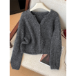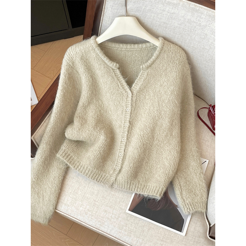 Women Beige Cardigan Cozy Sweater Harajuku Vintage Korean Y2k Long Sleeves V-Neck Cashmere Sweaters Jumper 2000s Clothes Autumn