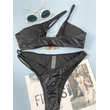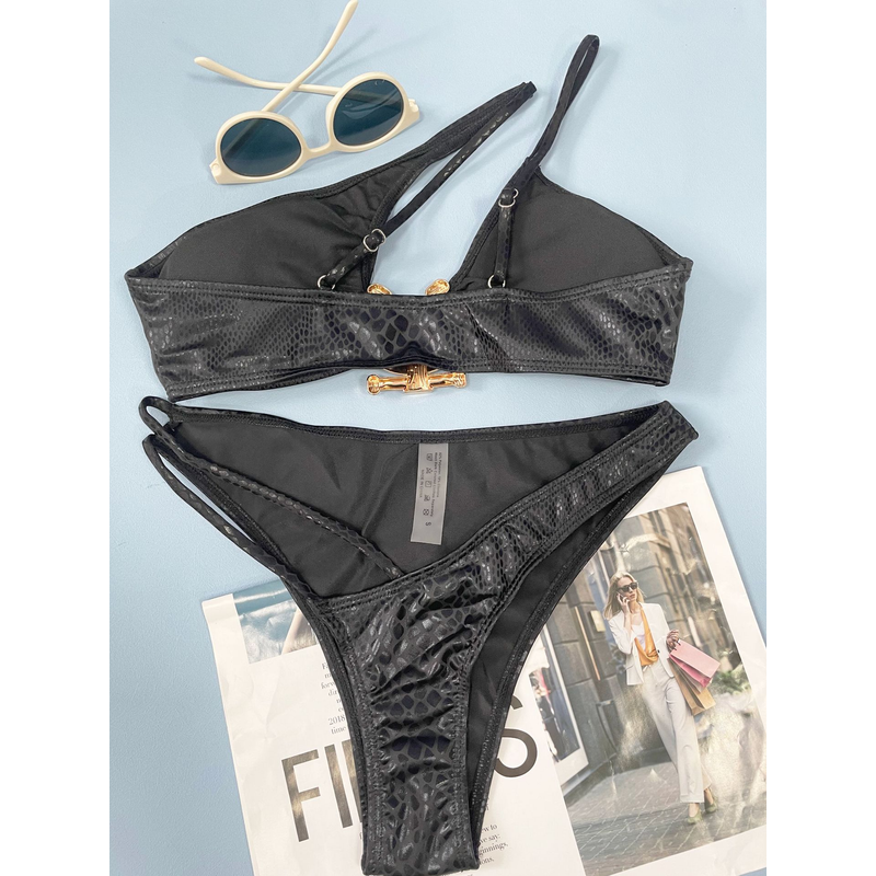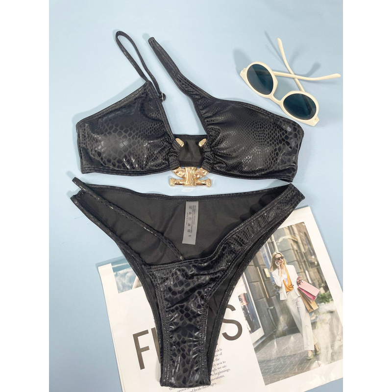 Women Bikini Serpentine Pattern Swimsuit Three Point Tight Swimwear Navy Blue S