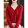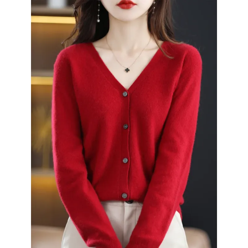 Women Cardigans V-neck Long Sleeve Knitted Outerwear Solid Thin Spring Autumn Sweaters Knitwears Korean Fashion Red Cardigans