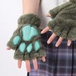 Women Cartoon Cat Claw Gloves Thickened Plush Lovely Style Bear Paw Exposed Fingers Half Winter Mittens Warm Girls Gift Gloves