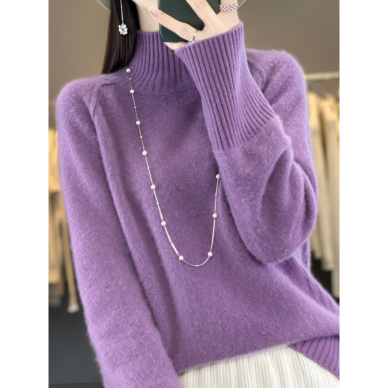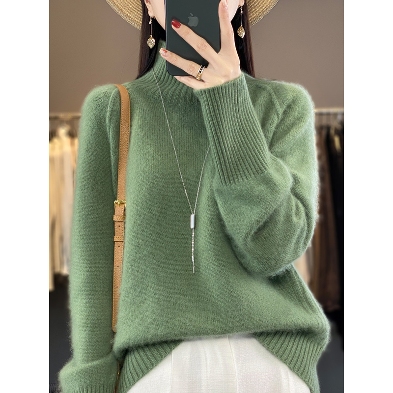 Women Cashmere Sweater 100% Merino Wool Knitted Pullover Autumn Winter Mock Neck Knitwear Female Soft Casual Fashion Warm Top
