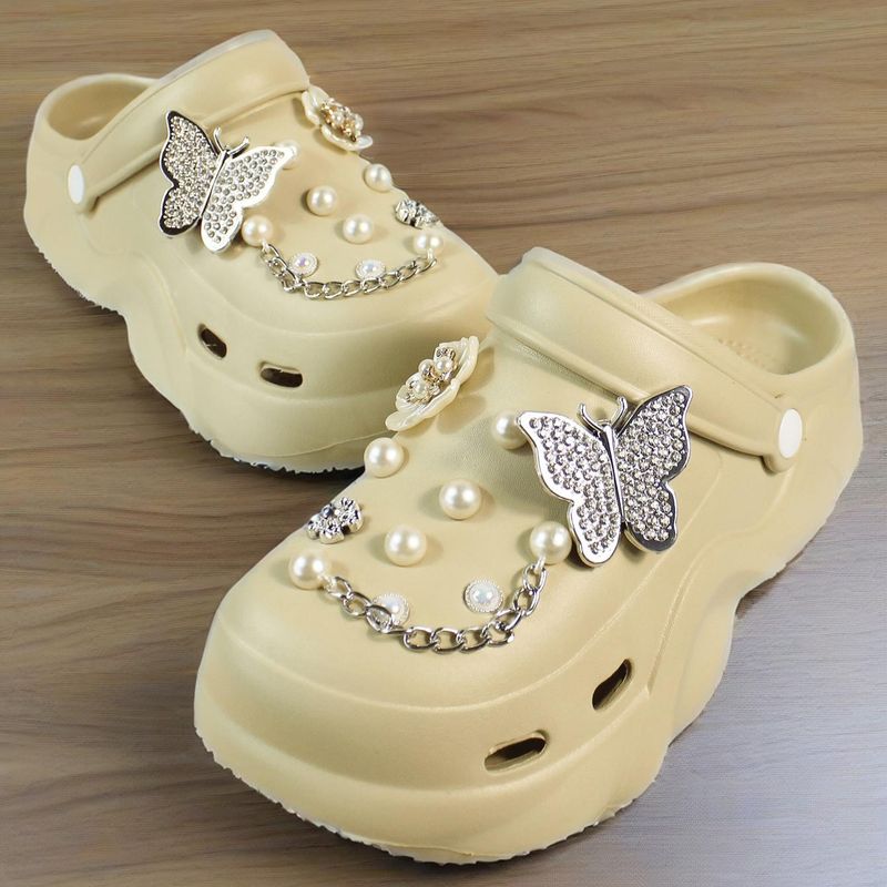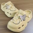 Women DIY Silver Butterfly-Knot Fashion Bow Decor Clogs Summer Sping Autumn Beach Sandals Cave Hole Garden Shoes Students Girls