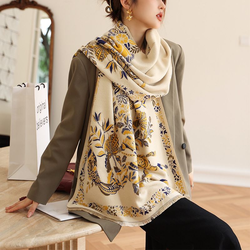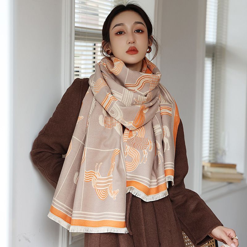 Women Double Sided Retro Carriage Warm Scarf Leather Pink 65x185cm