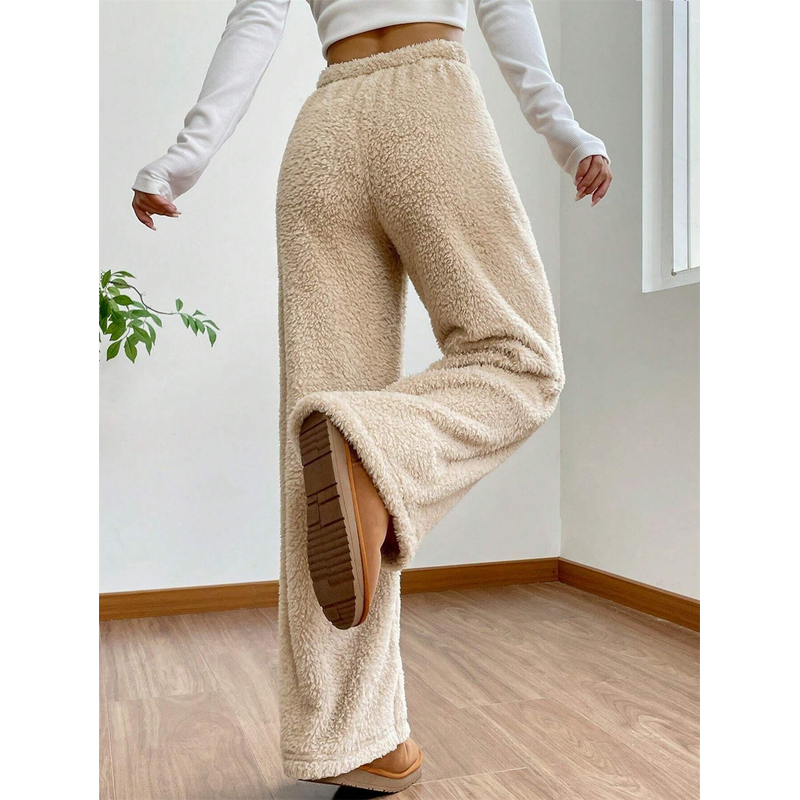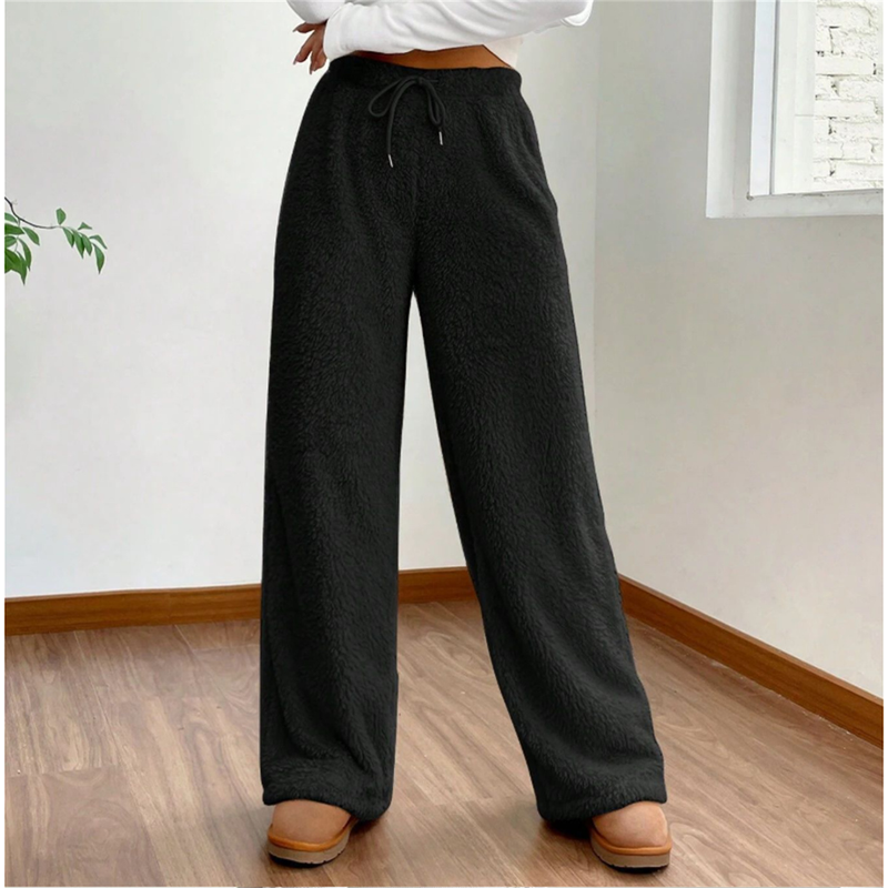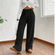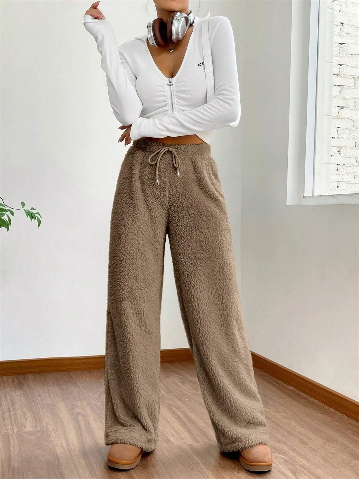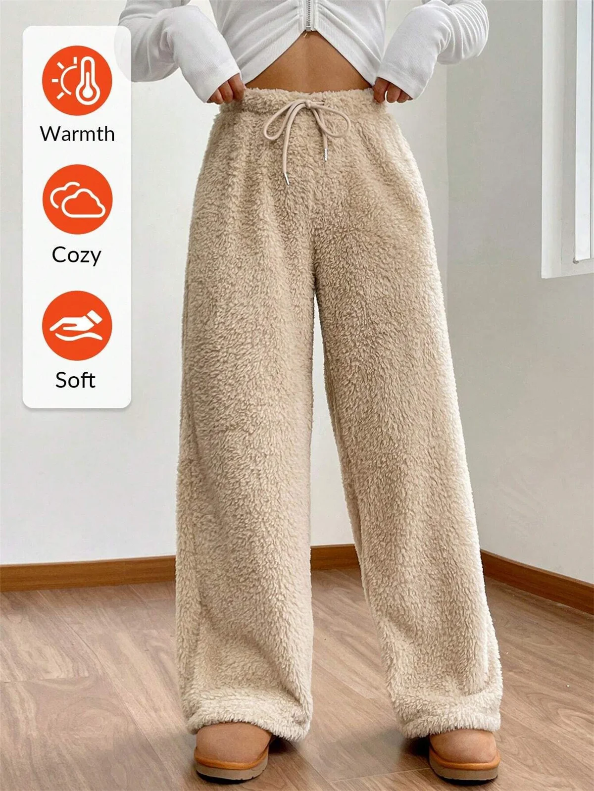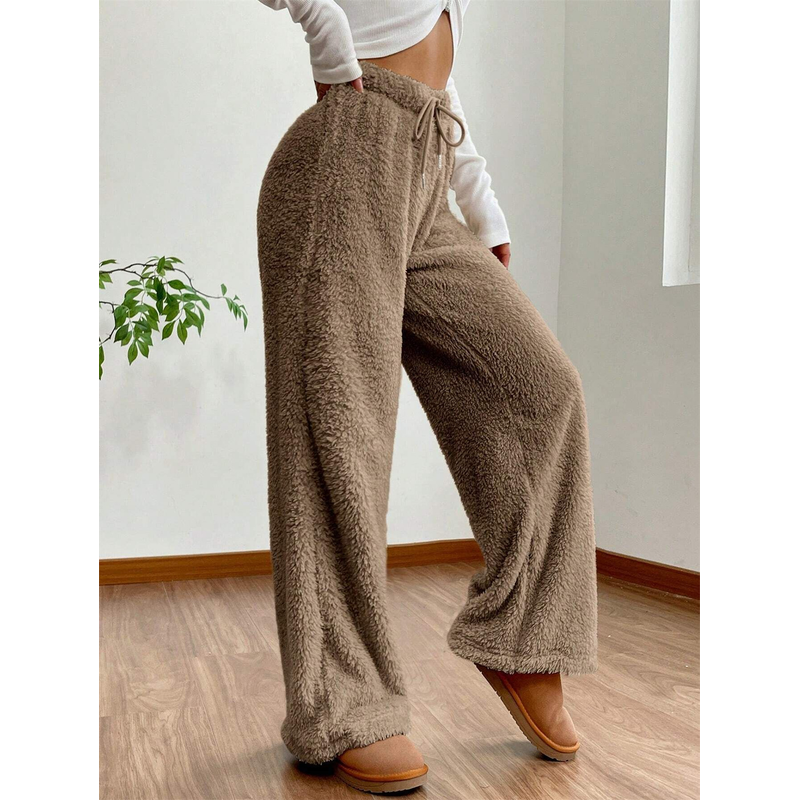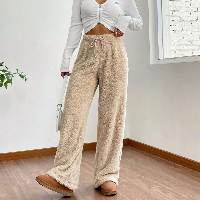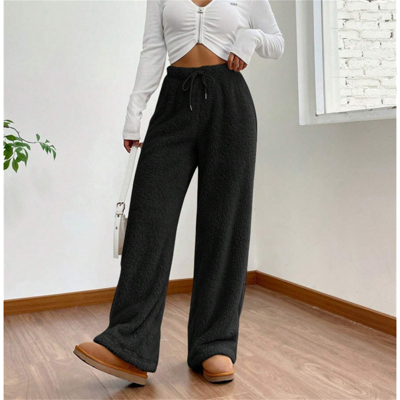 Women Drawstring Autumn Winter Pant Fashion High Wasit Plush Warm Pants Casual Straight Outfit Trousers Lady Streetwear Vintage