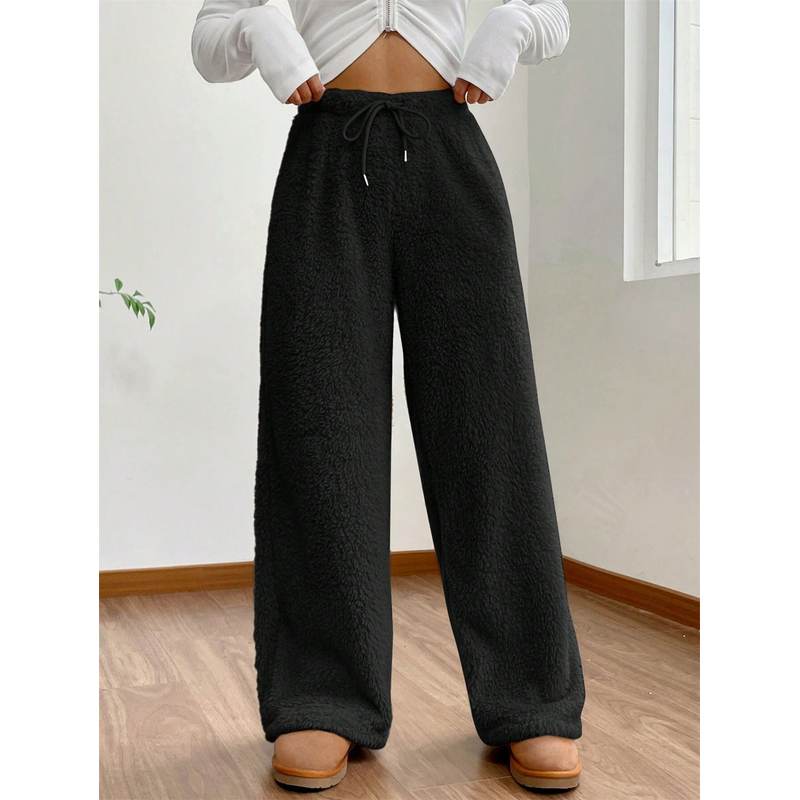 Women Drawstring Autumn Winter Pant Fashion High Wasit Plush Warm Pants Casual Straight Outfit Trousers Lady Streetwear Vintage