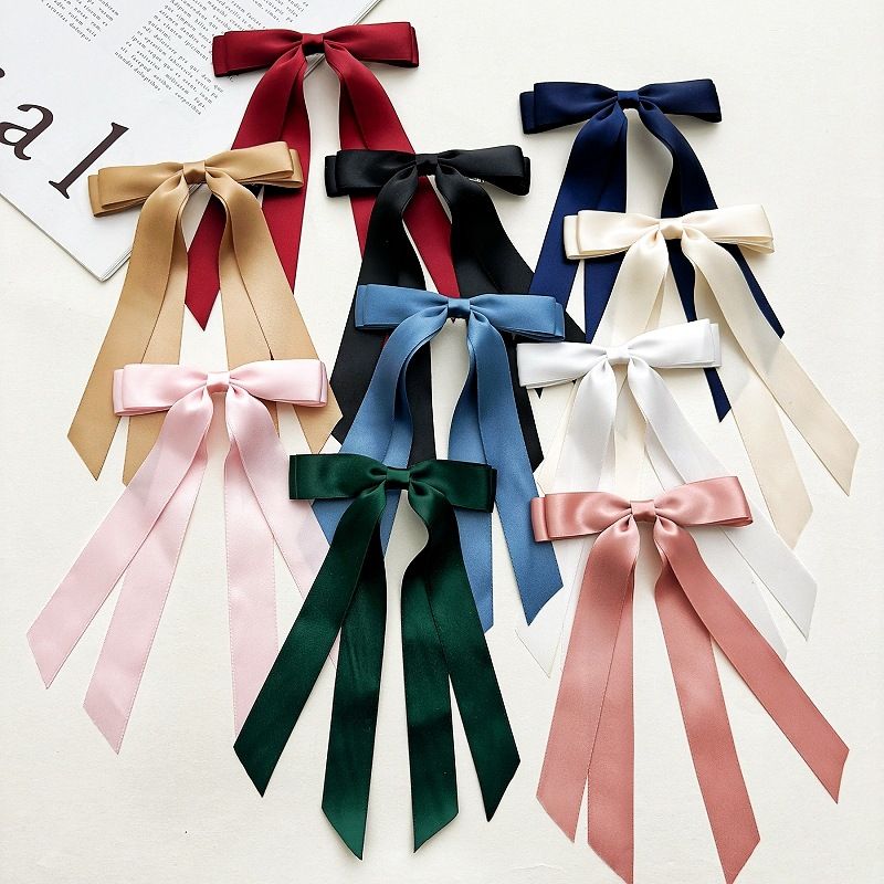Women Elegant Bow Ribbon Hair Clip Fashion Solid Satin Spring Clip Simple Bowknot Hairpins Barrettes Hair Accessories for Girls