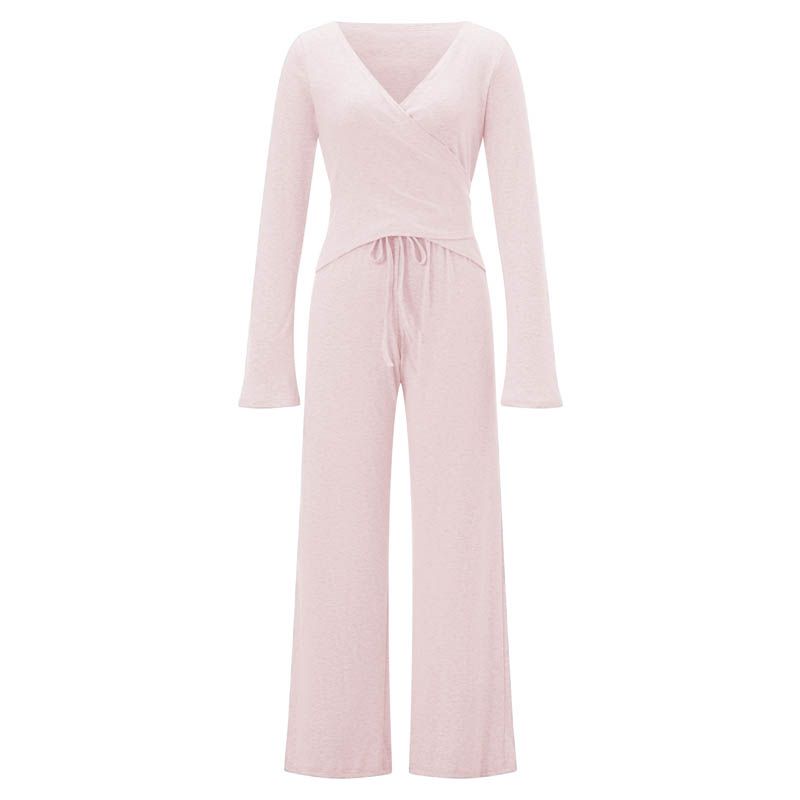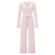 Women Fashion Lounge Set Vintage 2 Piece Outfit V Neck Waist Tie T-shirt + Elastic Waist Pants Autumn Long Sleeve Crop Tops