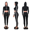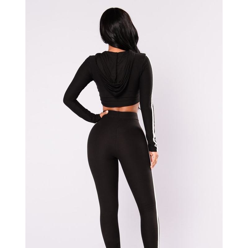 Women Ladies Tracksuit Crop Top Hoodies Sweatshirt Pants Sets Slim Wear Casual Suit black S