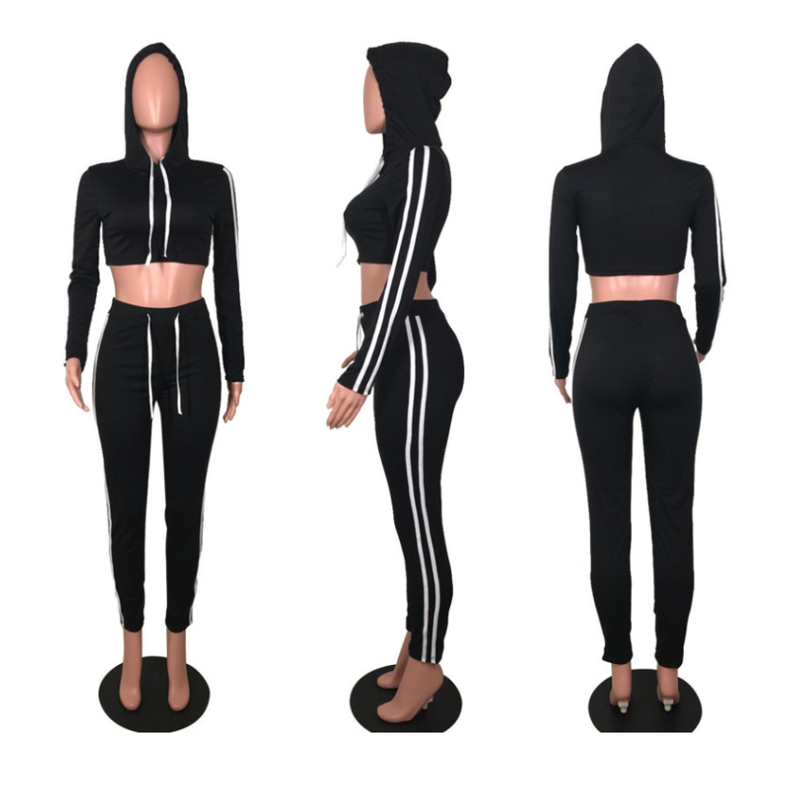 Women Ladies Tracksuit Crop Top Hoodies Sweatshirt Pants Sets Slim Wear Casual Suit Pink L