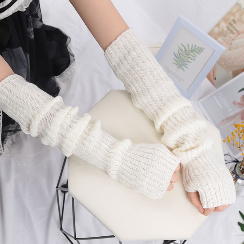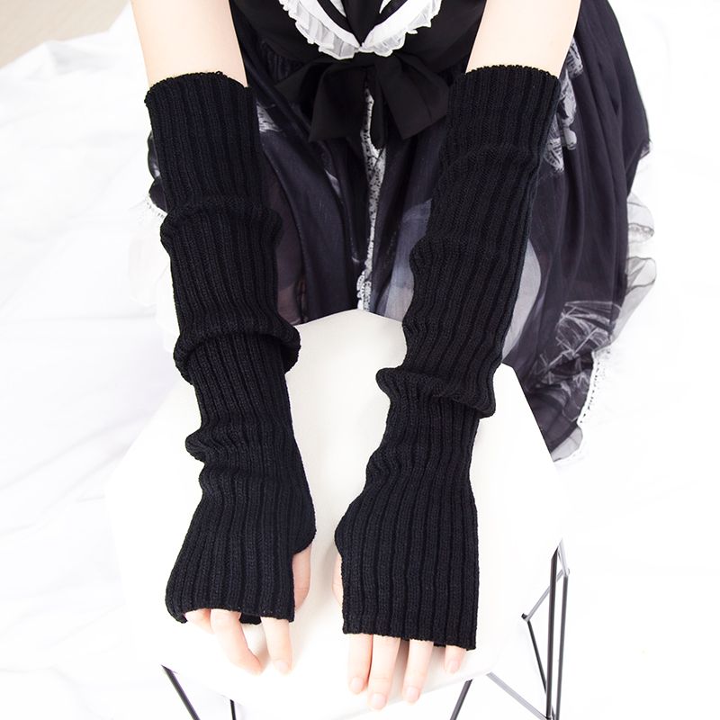 Women Long Fingerless Gloves Soft Female Glove Lolita Kawaii Mitten Winter Warmer Knitted Arm Sleeve Girls Punk Gothic Gloves