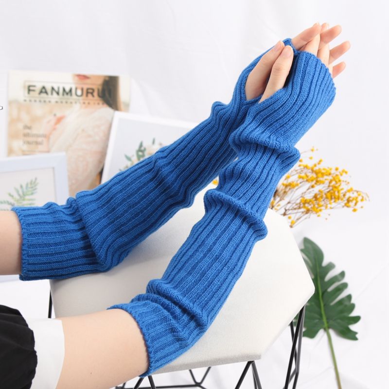 Women Long Fingerless Gloves Soft Female Glove Lolita Kawaii Mitten Winter Warmer Knitted Arm Sleeve Girls Punk Gothic Gloves