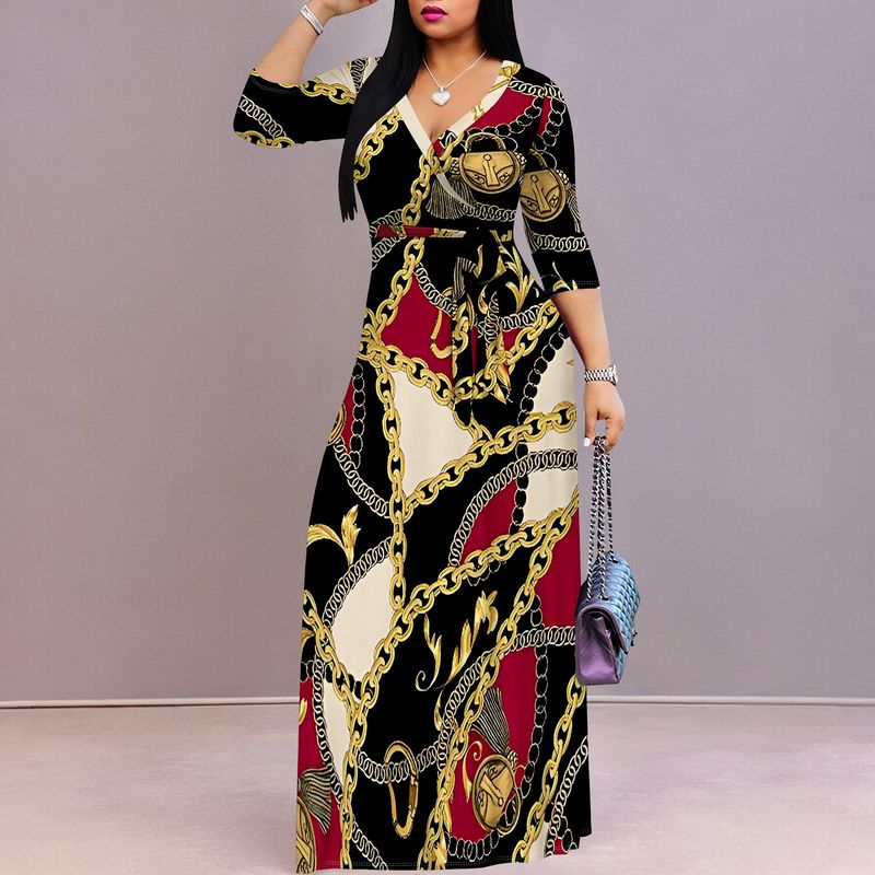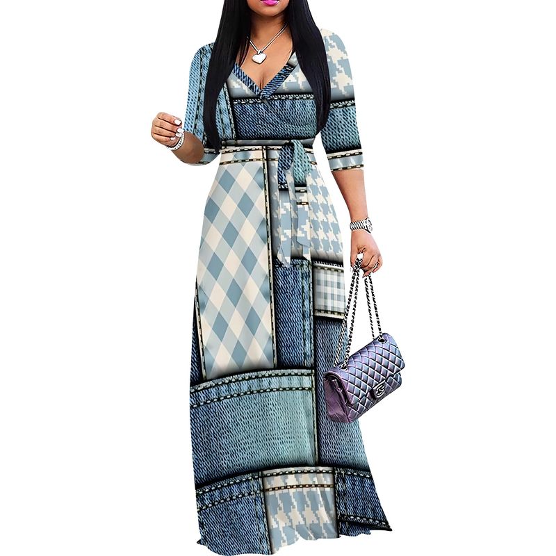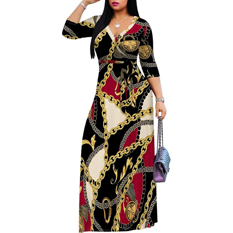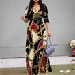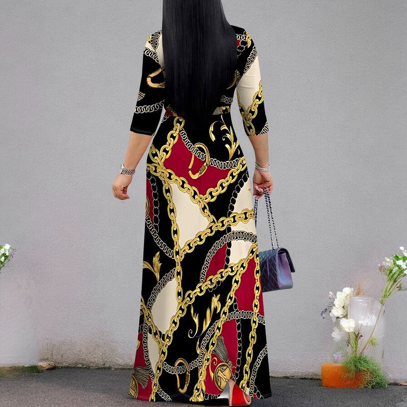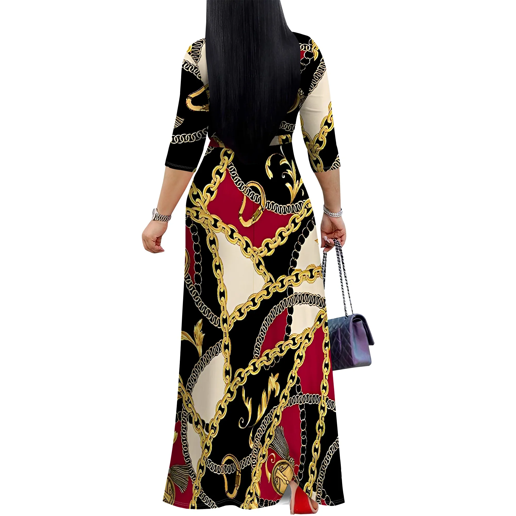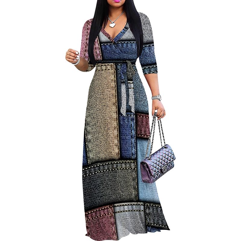 Women's 3/4 Sleeve V Neck Women With Pocket and Bel Long Dress Fashion Printed Split Hem Club Party Casual Vacation Maxi Dress