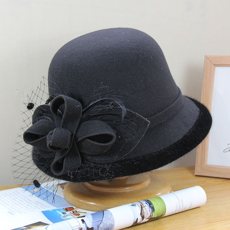 Women's Autumn And Winter British Retro Socialite Bucket Hat Black Adjustable