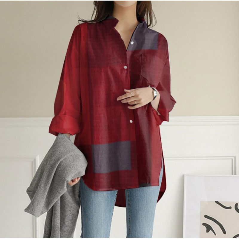 Women's Autumn Long Sleeved Shirt Casual Loose Shirt Yellow 4XL