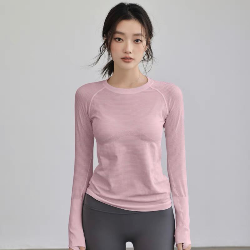 Women's Autumn & Winter Yoga Comprehensive Training Top High-Elastic Slim Crew Neck Quick-Dry Sports Long-Sleeve Fitness Clothes