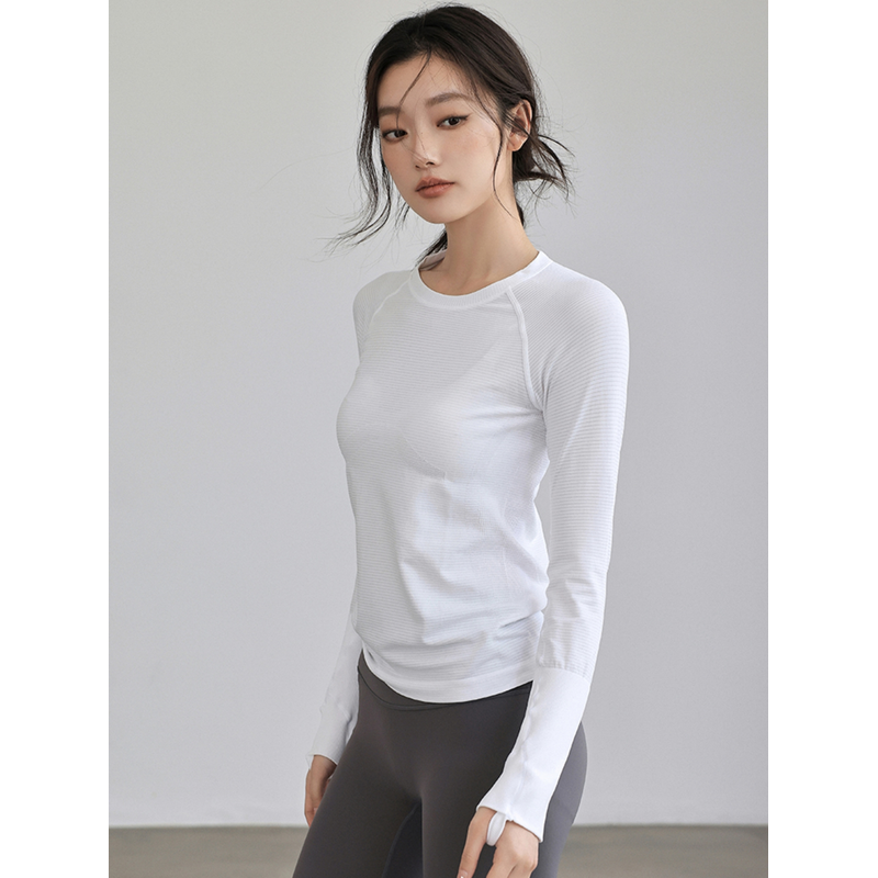 Women's Autumn & Winter Yoga Comprehensive Training Top High-Elastic Slim Crew Neck Quick-Dry Sports Long-Sleeve Fitness Clothes