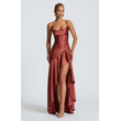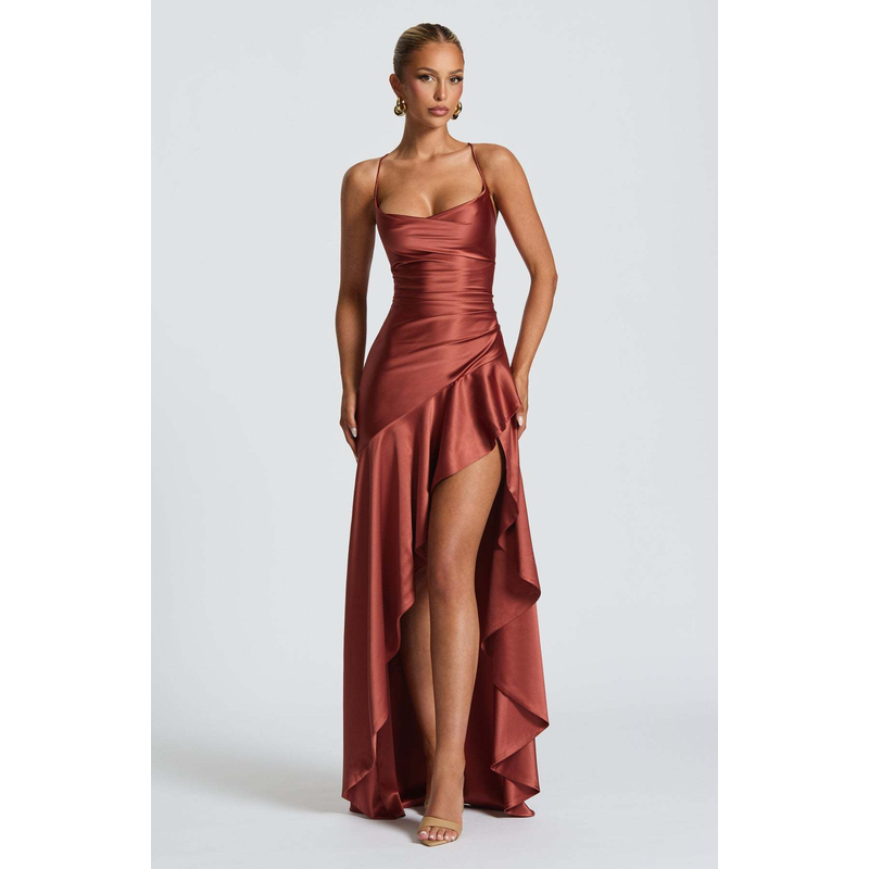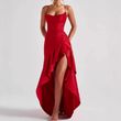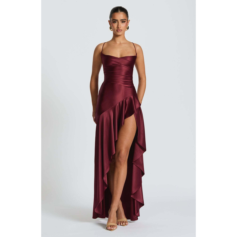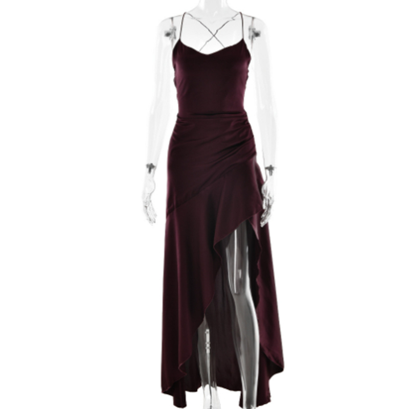 Women's Backless Ruffles Irregular Dress Summer Fashion Evening Party Club Split Suspender Maxi Dresses Clothing Wine Red S