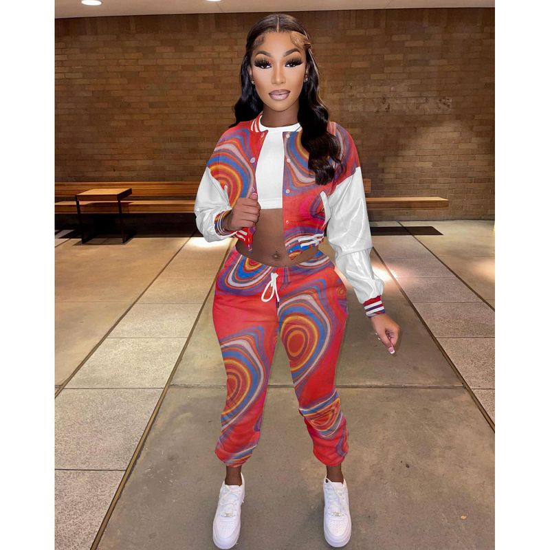 Women's Baseball Tracksuit Button Leather Red XL