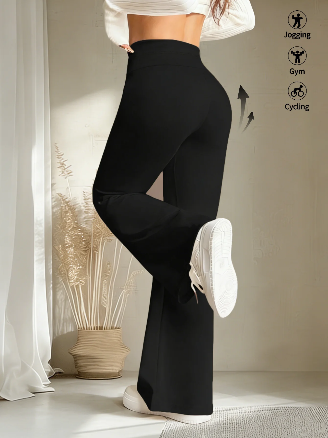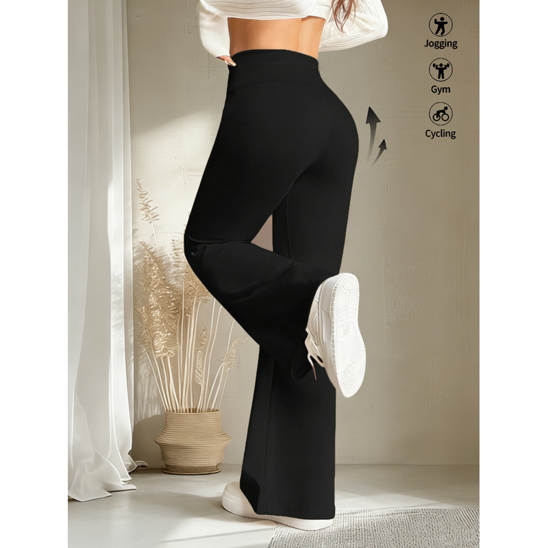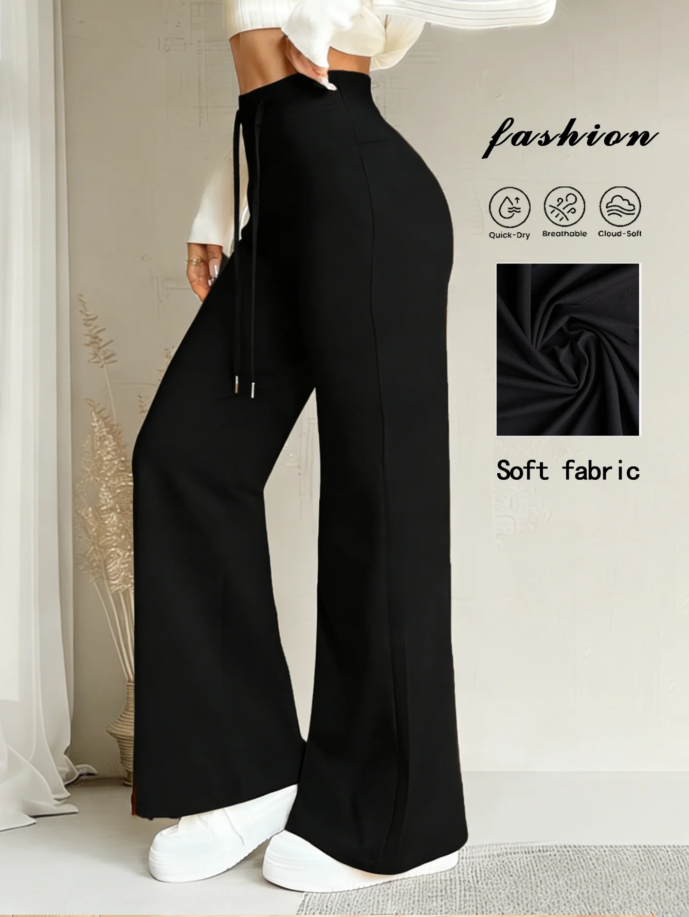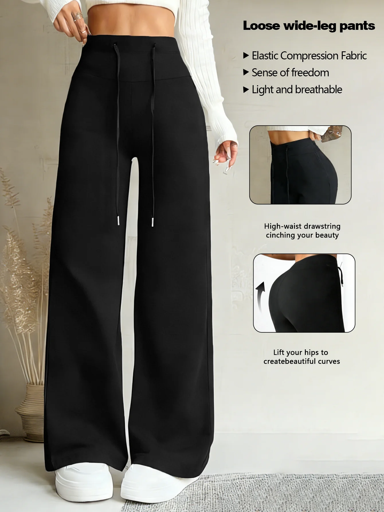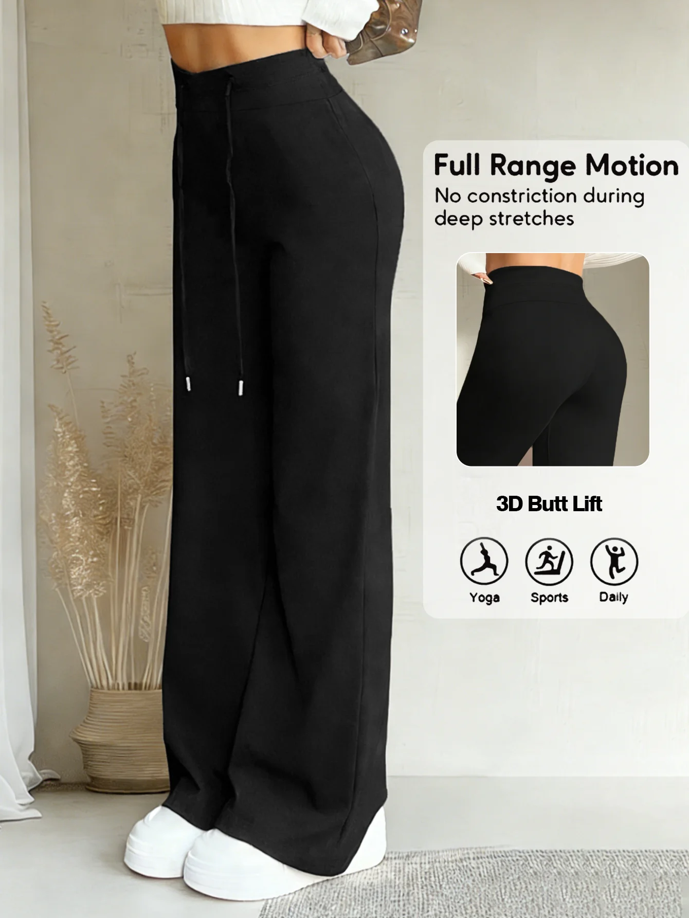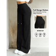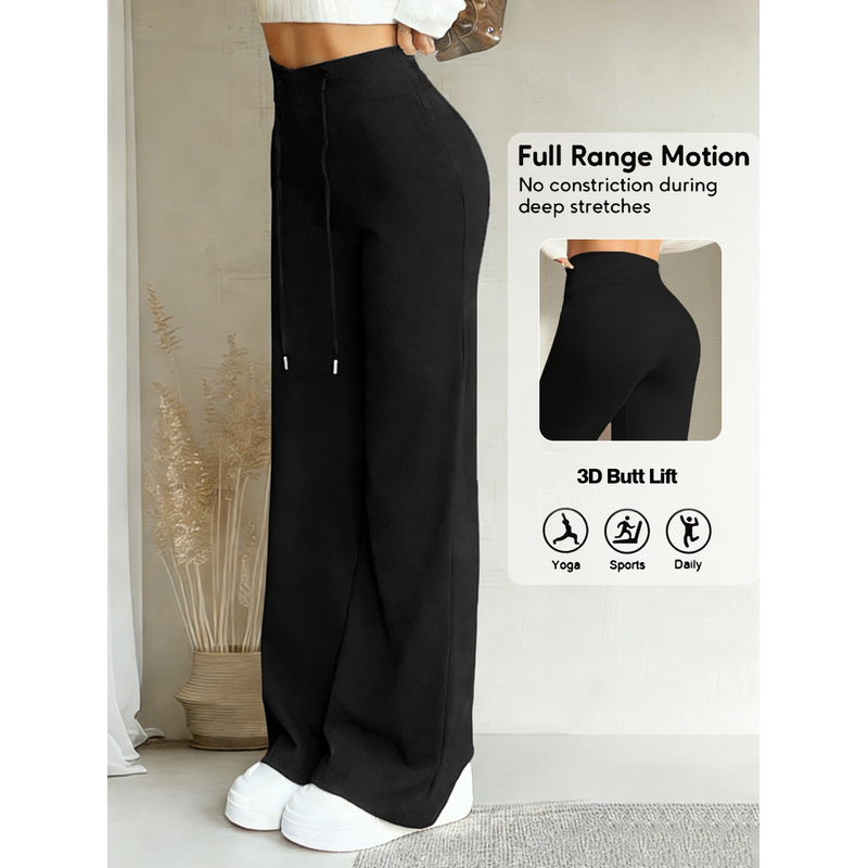 Women's Black Drawstring Wide Leg Pants High Waisted Butt Lift Soft Breathable Casual Loose Abdominal Control Streetwear Trouser