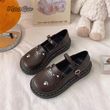 Women's British Style Thick Bottom Pumps Buckle Single Shoes Lolita Kawaii Cat Flat Mary Janes Shoes Preppy Style Student Pumps